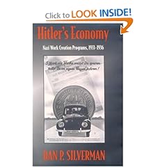 According to conventional wisdom, as a result of military expenditures,Hitler's economy went from 34%unemployment when he entered office in early1933 to virtually full employmenr by 1936. Professor Silvermanargues, asa result of impressive research in Nazi archives, that it was work creationprograms that account for this "miracle" and it was the 4-yearPlan announced in 1936 that represented an emphasis on autarky and arms anda seller's market.It is surprising how conservative Hitler's initial planswere since they relied on the expertise of Hjalmar Schacht, who wasreplaced by Walther Funk after the announcement of the 4-year plan.byGoebbles. The early years represented continuity with the Bruning policy,particularly the Todt plans for motorization and the famous autobahns, oneof the positive legacies of Hitler. Silverman's account of sharp regionaldifferences is also interesting with East Prussia getting back to fullemployment at an early dater and Aachen lagging. It is natural to compareHitler's achievements with FDR's New Deal which initially had to deal withonly 25% unemployment. Generally speaking, Hitler was the more successful,particularly in view of FDR's attempt to balance the budget in 1937 therebyproducing the Roosevelt recession and the rise of unemployment from 14% to19%. While Currie and Eccles managed to achieve the Keynesian euthanasia ofthe rentier in the late thirties, Roosevelt was overall a timid Keynesianuntil Wprld War II and was plagued by double-digit unemployment until1941.FDR devalued the dollar in 1933 by about the same percentage asBritain in 1931 but Hitler and Schachr ruled out currency devaluationbecause of fears that it would be inflationary. Policies under Bruning hadbeen brutally deflationary with workers taking a 10% wage cut, but thr 1923hyperinflation (and Schacht's role in stopping it) was still fresh inpolicy-makers' minds. Workers in voluntary labor camps which absorbedunemployment were paid very low wages and lost their unemploymentcompensation which helped maintain price stability. Strangely Silvermanhardly mention the USSR as a source of ideas in the Hitler years lthoughthe 4-year Planitself was inspiredby the Soviet FYP, the second ofwhich was being completedby the time Goebbels began administering theGerman equivalent. Earlier (February,1935) Soviet-type "workbooks" necessary for employment were introduced. Ther Russian economytoday would seem to have more to learn from the German experience after 7years of Yeltsin's brutally deflationary monetarist policy than from FRD'sfiscalbungling. The non-payment of wage and pension arrears is a historiclow in the application of the neo-classical notion that attrbutesrecessionary unemployment to exhorbitant wages.Click Here to see more reviews about: Hitlerâs Economy: Nazi Work Creation Programs, 1933-1936 (Hardcover)